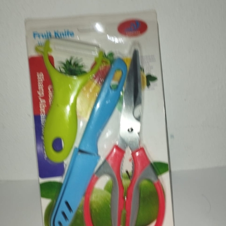 • Conjunto de Utensílios de Cozinha – Faca para Frutas, Descascador e Tesoura