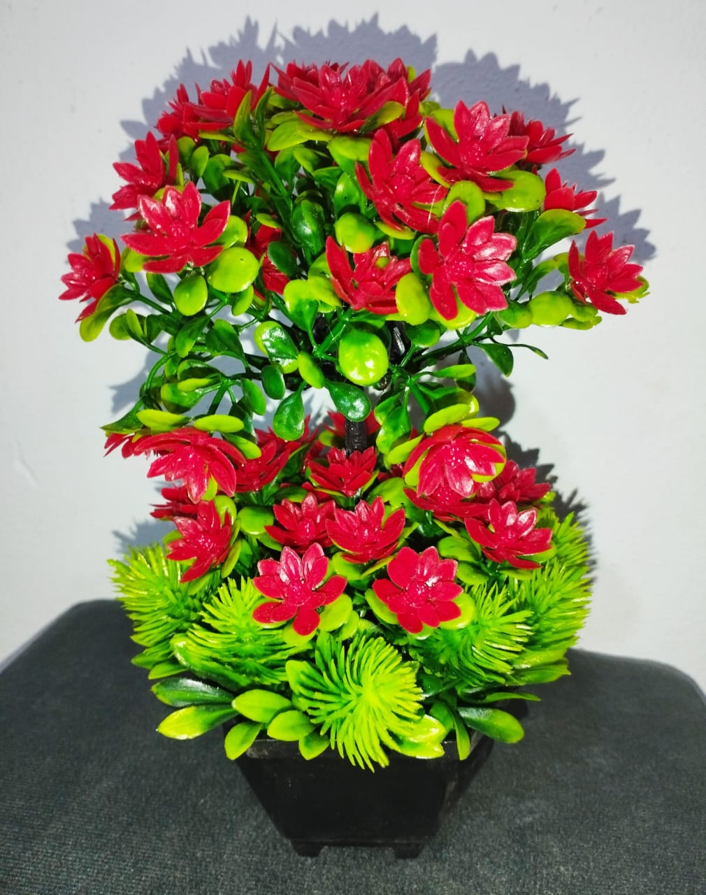 ✅ Flores artificiais na cor vermelha com folhagem verde vibrante