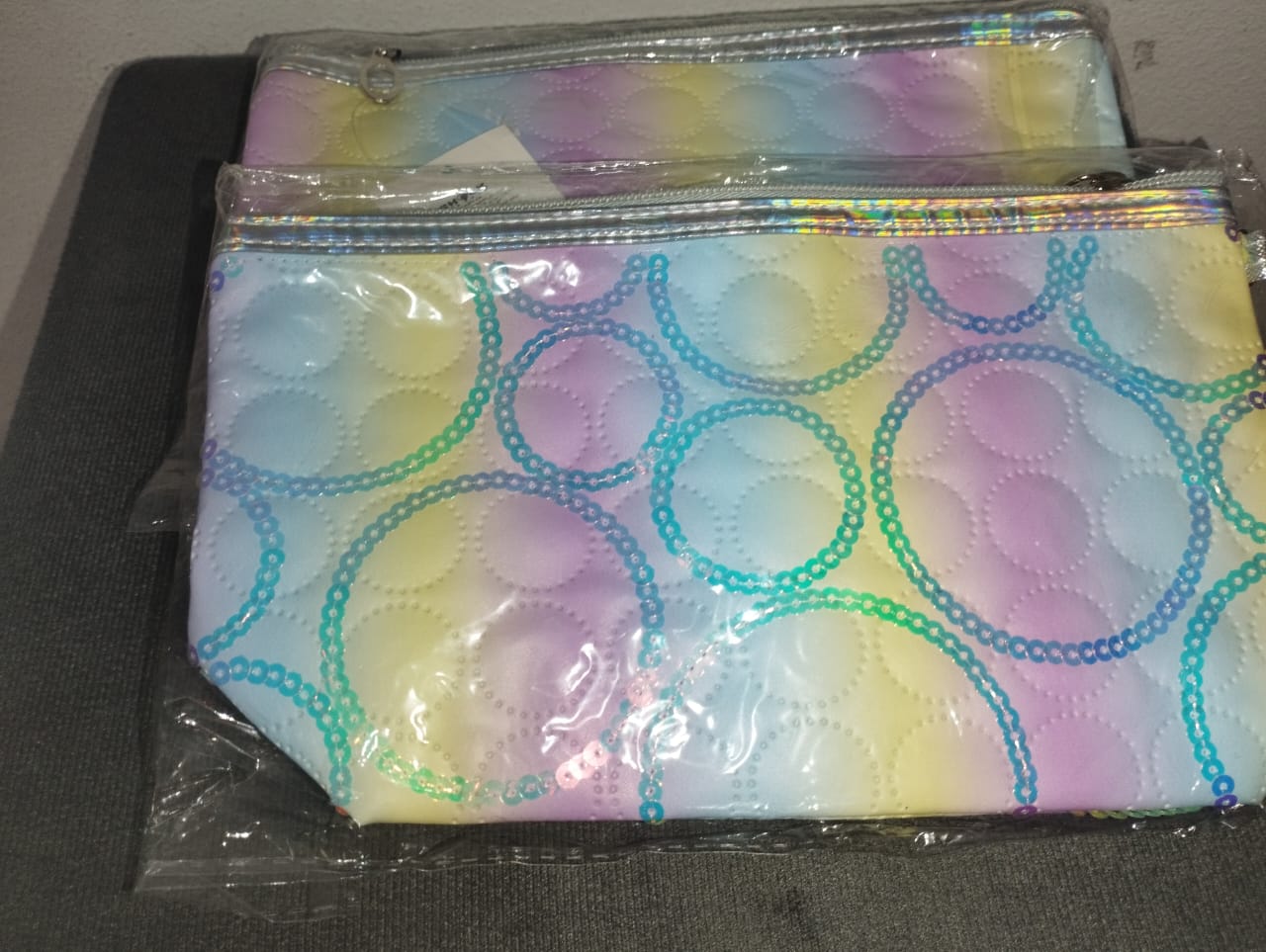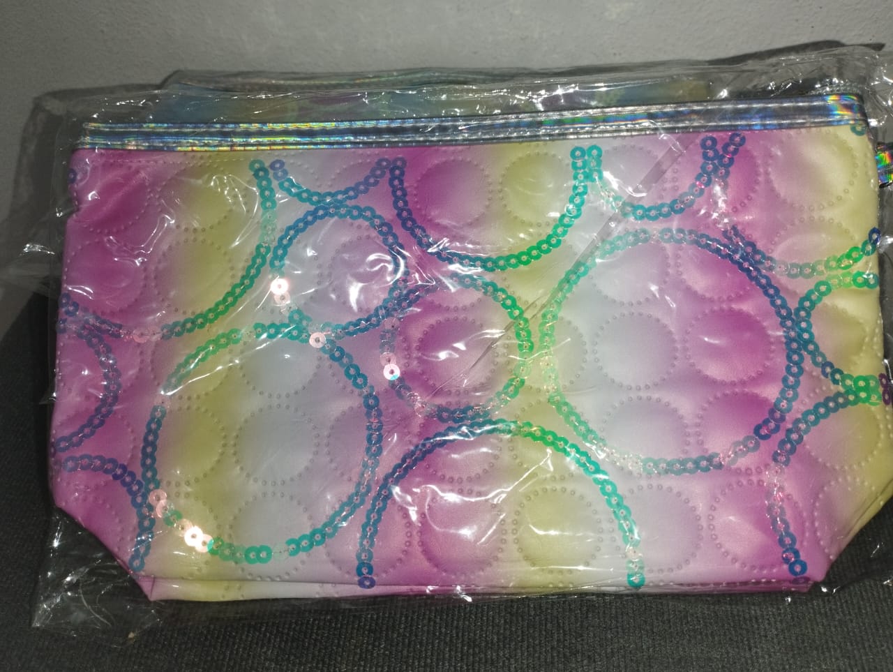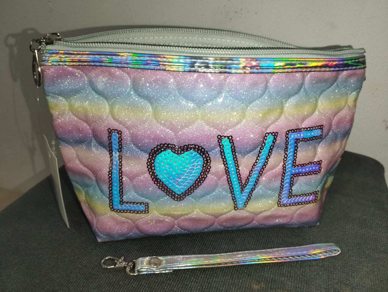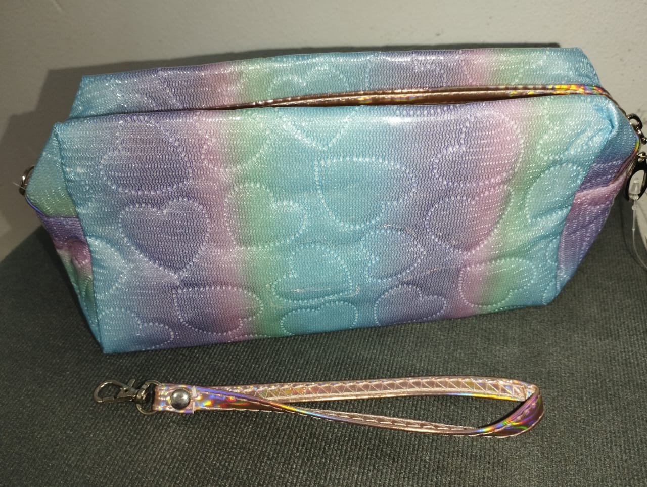 Prática, leve e estilosa, ideal para organizar maquiagens, cosméticos, acessórios ou itens pessoais. Possui fechamento em zíper e estampa colorida de corações, trazendo charme e delicadeza ao seu dia a dia.