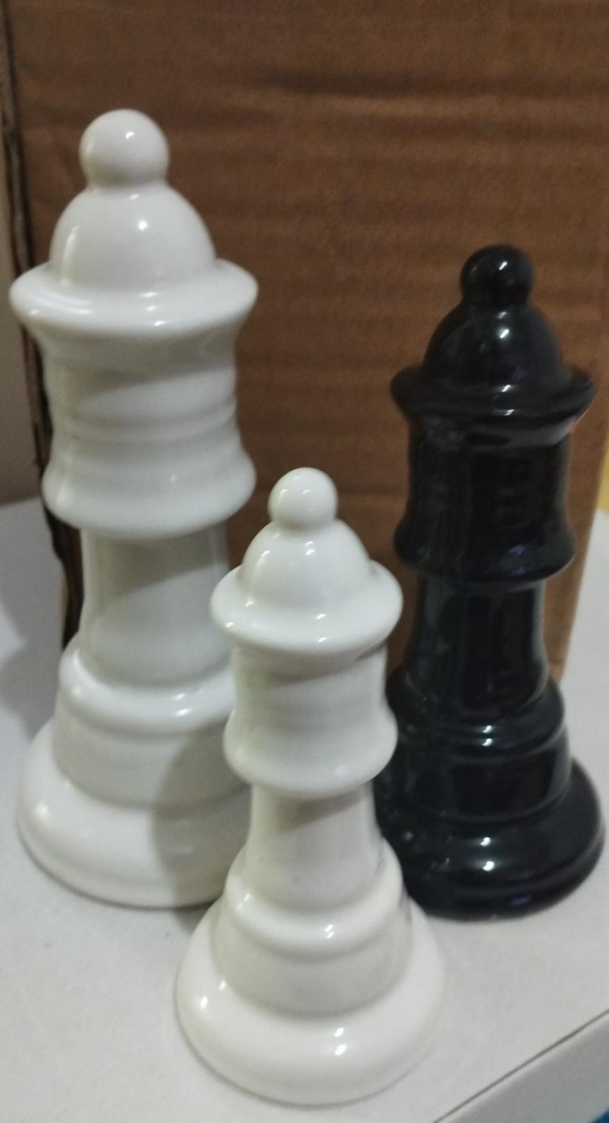 Conjunto com 3 peças decorativas em formato de torres de xadrez, produzidas em cerâmica de alta qualidade com acabamento brilhante. Perfeito para decoração de ambientes, presentes criativos ou para amantes do xadrez.