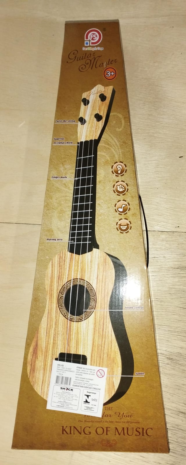 O Mini Violão Infantil Guitar Master é perfeito para estimular a criatividade, coordenação motora e o gosto pela música desde cedo. Indicado para crianças a partir de 3 anos, possui design realista em formato de violão/ukulele, com cordas que emitem som ao serem tocadas.