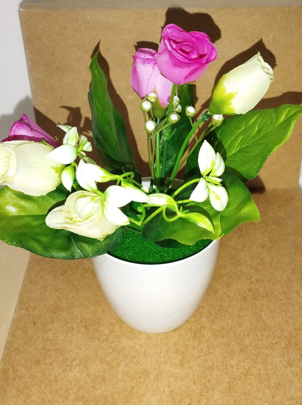 Vasos de plantas artificiais em cores variadas (necessário consulta).